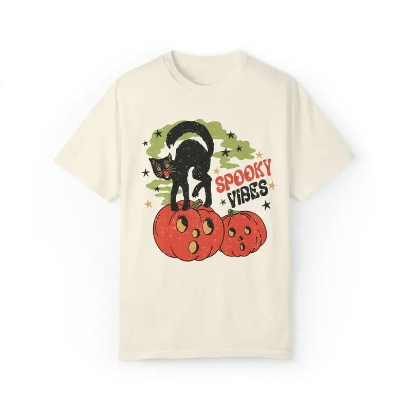 80s Vintage Inspired Halloween Tee, Cat Mom Retro Halloween Graphic Tee Witch Kitten Pumpkin Season T-shirt, Vintage 90s style top clothing, Unisex graphic Streetwear shirts