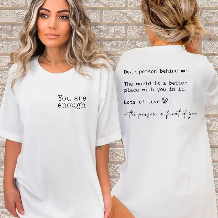 Dear Person Behind Me Shirt, You Are Enough T-Shirt, Mental Health Matters Tee, Inspirational Dress, You Matter T-Shirt, Gift for Wife, Her
