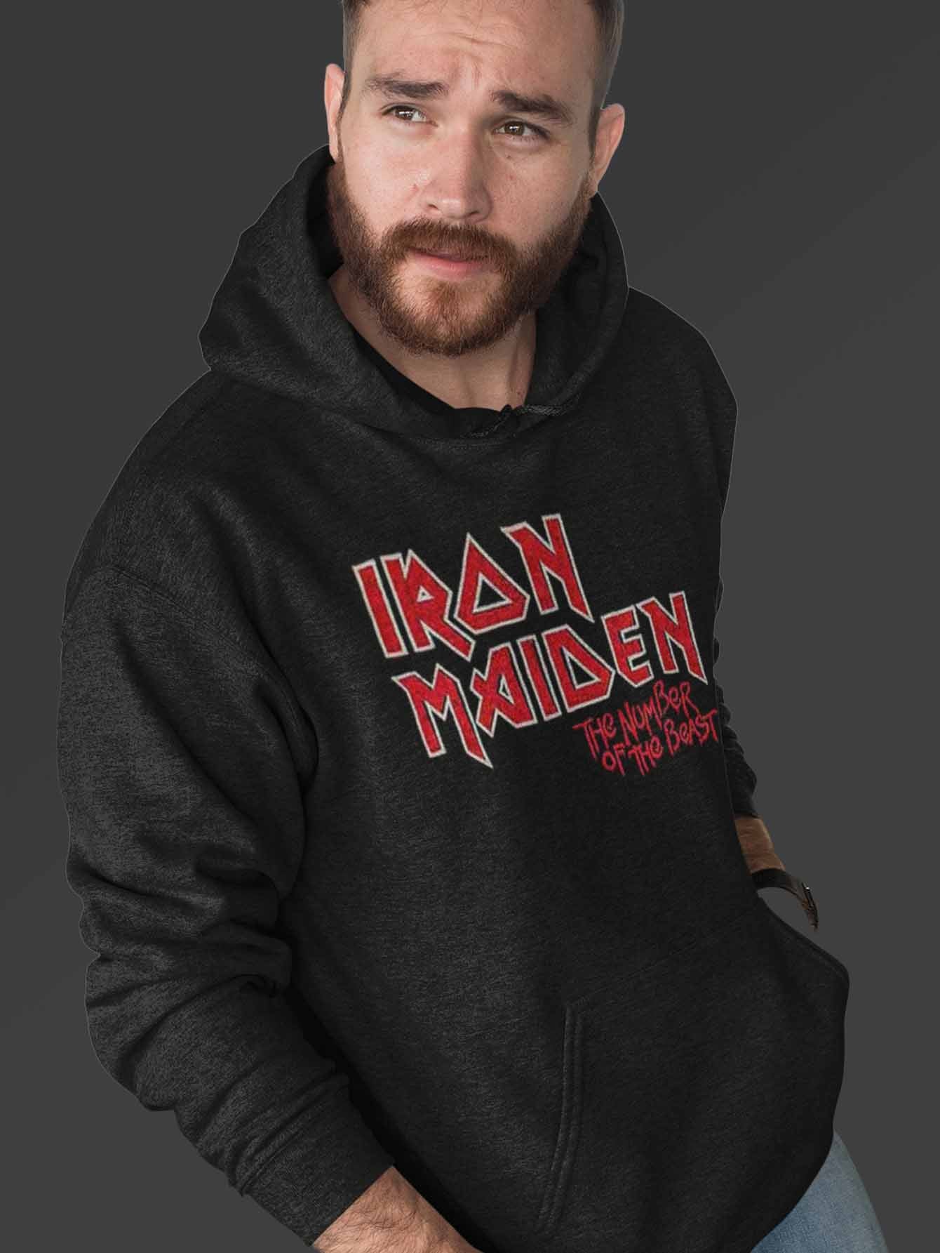 Iron Maiden Unisex Pullover Hoodie: Number of the Beast Vintage Logo Faded Edge Album (Back Print)