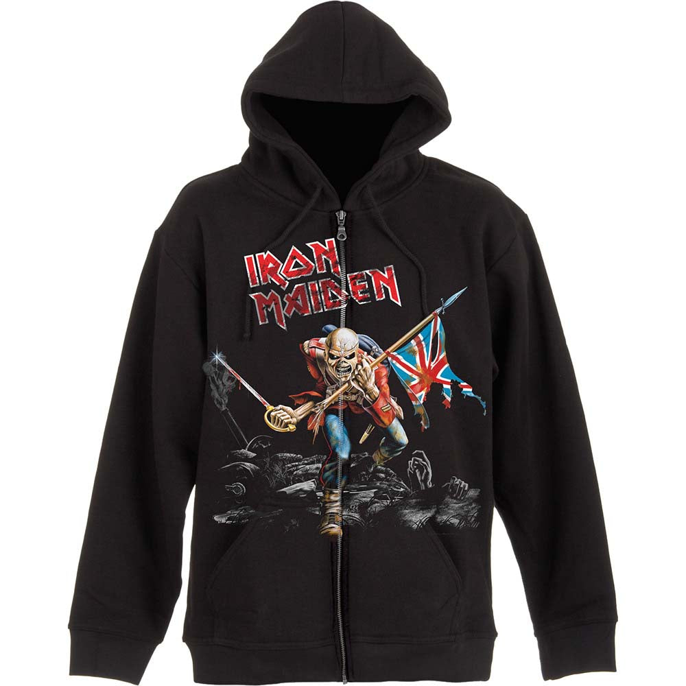 Iron Maiden Unisex Zipped Hoodie: Scuffed Trooper (Back Print)
