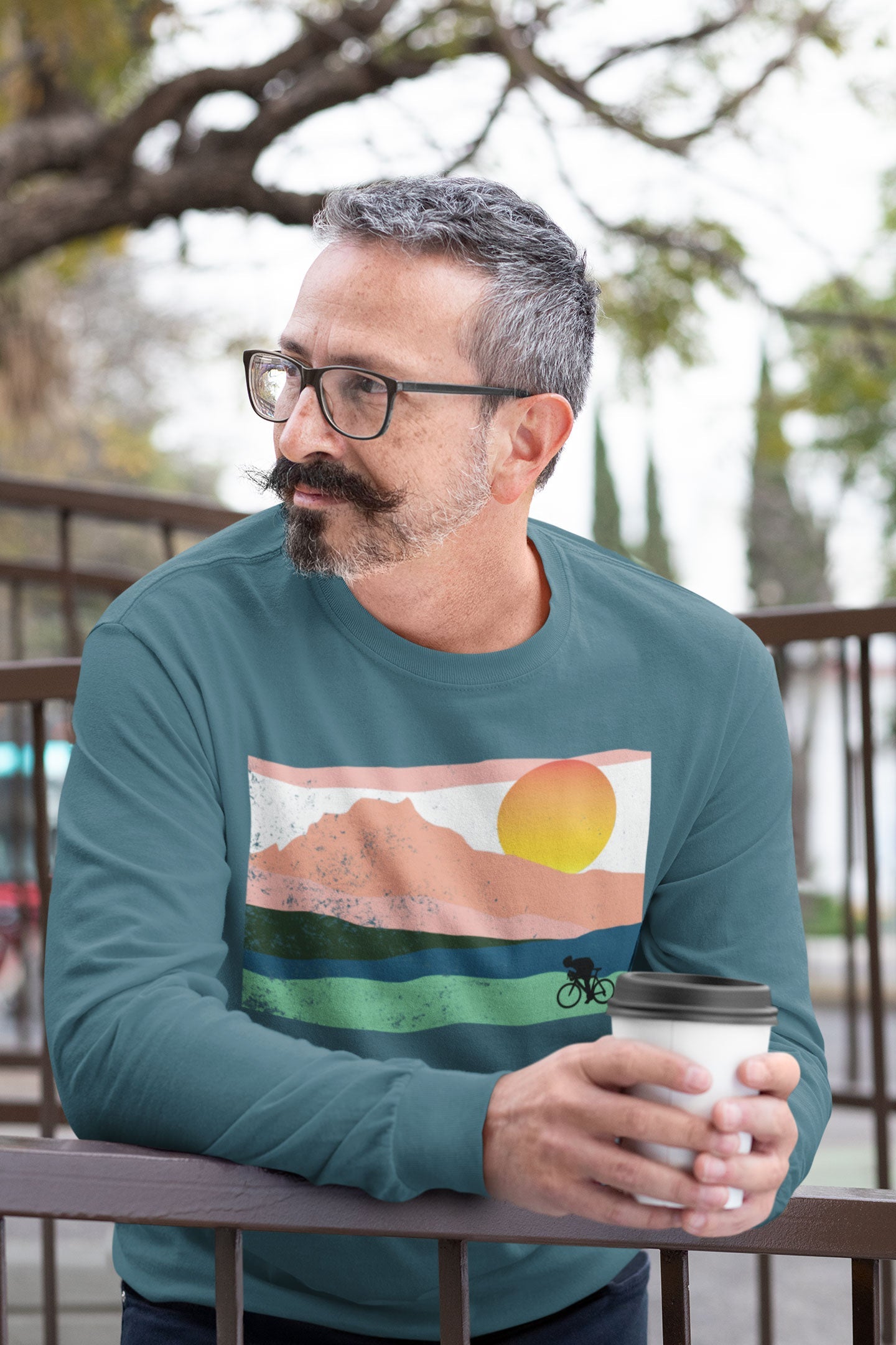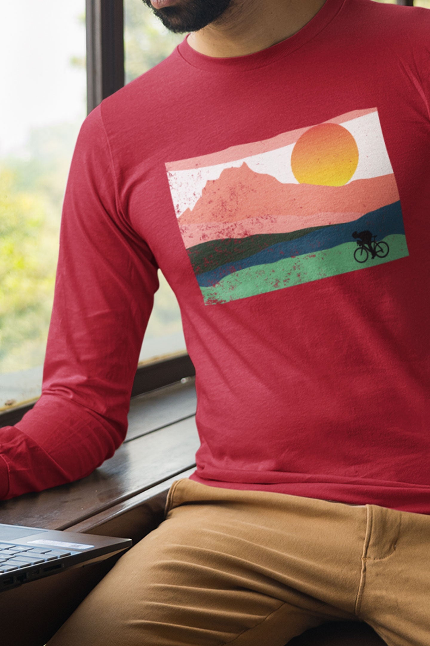 Mountain Sunset Cyclist Unisex Longsleeve Tee