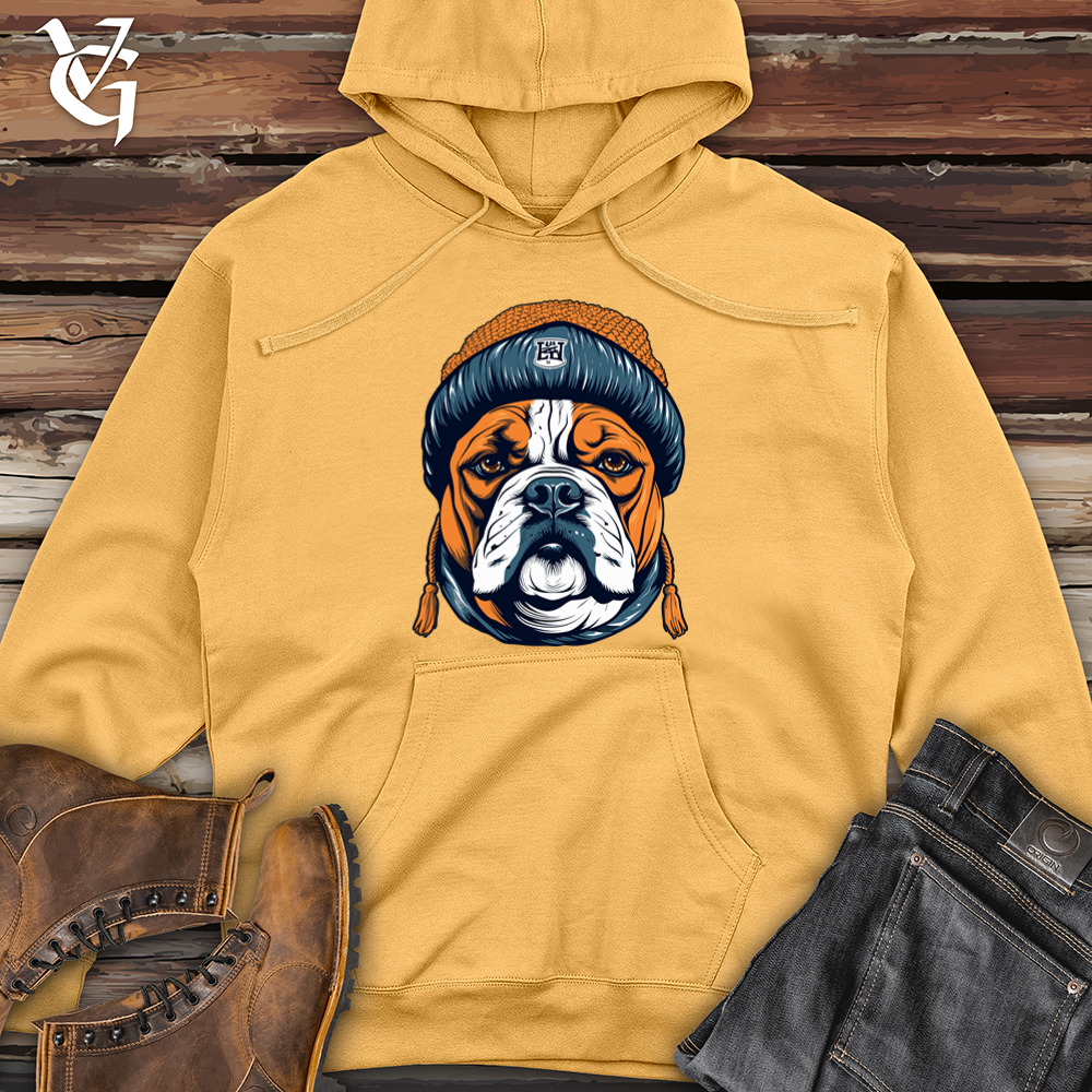 Vintage Beanie Wearing Bulldog Midweight Hooded Sweatshirt